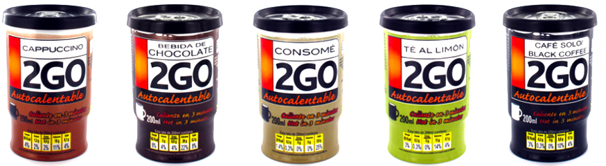 En 2009, Fast Drinks a développé et patenté à un niveau mondial le concept d´emballage auto-chauffant durable, rationnel et sûr appelé : 2GO.